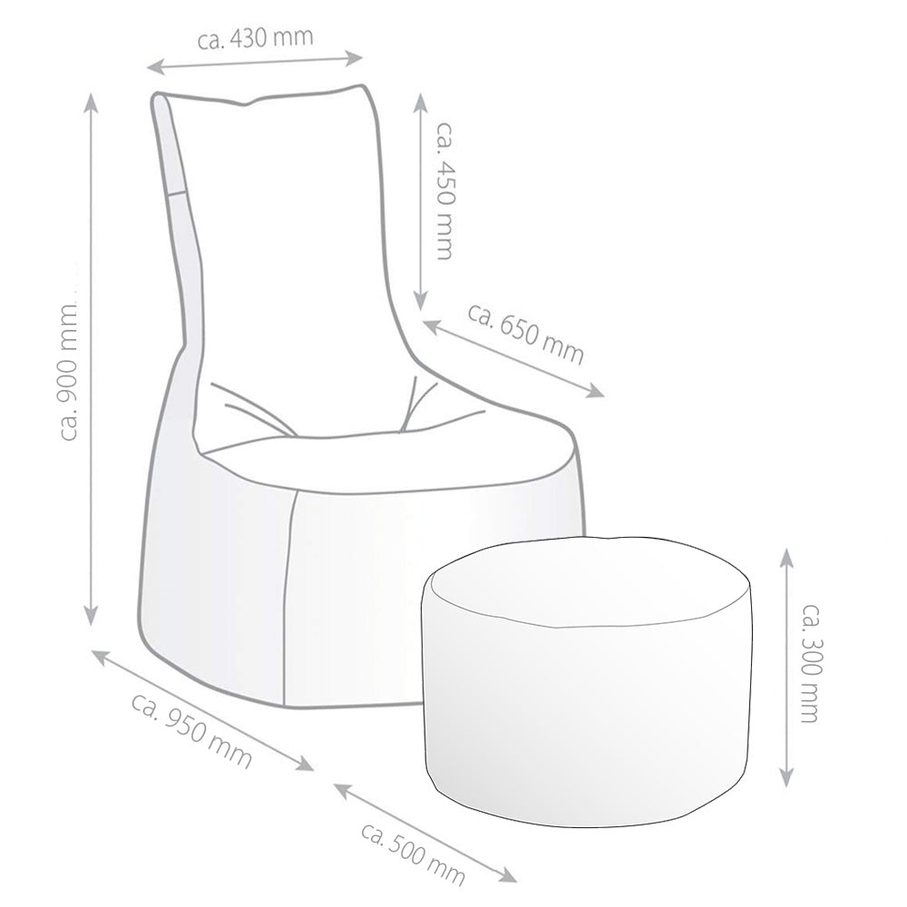 Dimensions du pouf : 95 x 60 x 95 cm (LxlxH)